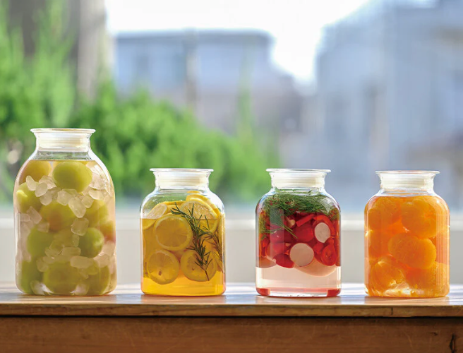 Glass handmade storage bottle 1,000mL.Heat-resistant glass