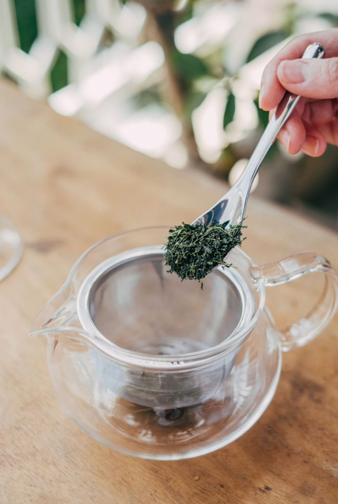 This tea pot features Hario's signature heatproof glass. The large metal strainer is spacious and allows the leaves to expand and extract easily.