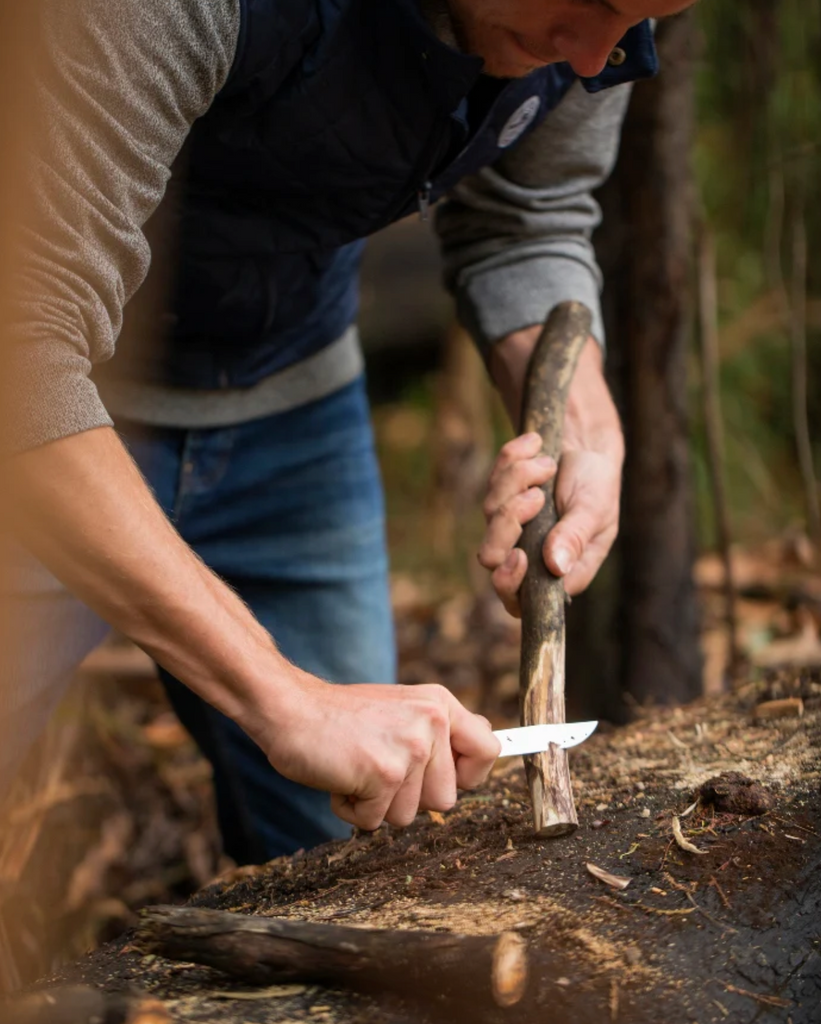 • The Opinel N°08 folding knife, accompanied by a synthetic leather sheath, is an ideal gift for any outdoor enthusiast. Crafted from Sandvik stainless steel, the blade is designed to maintain its sharpness for years with minimal upkeep. The lightweight faux-leather sheath is both durable and practical, easily attaching to belt loops and backpacks without hindrance. With a legacy spanning over 130 years, Opinel has been producing high-quality knives and tools in the French Alps, utilising traditional craftsmanship and premium materials. This iconic knife, first introduced in 1890, has garnered a loyal following among explorers, artists, farmers, and chefs. It is equipped with the Virobloc® safety ring, ensuring the blade remains securely opened or closed during use.