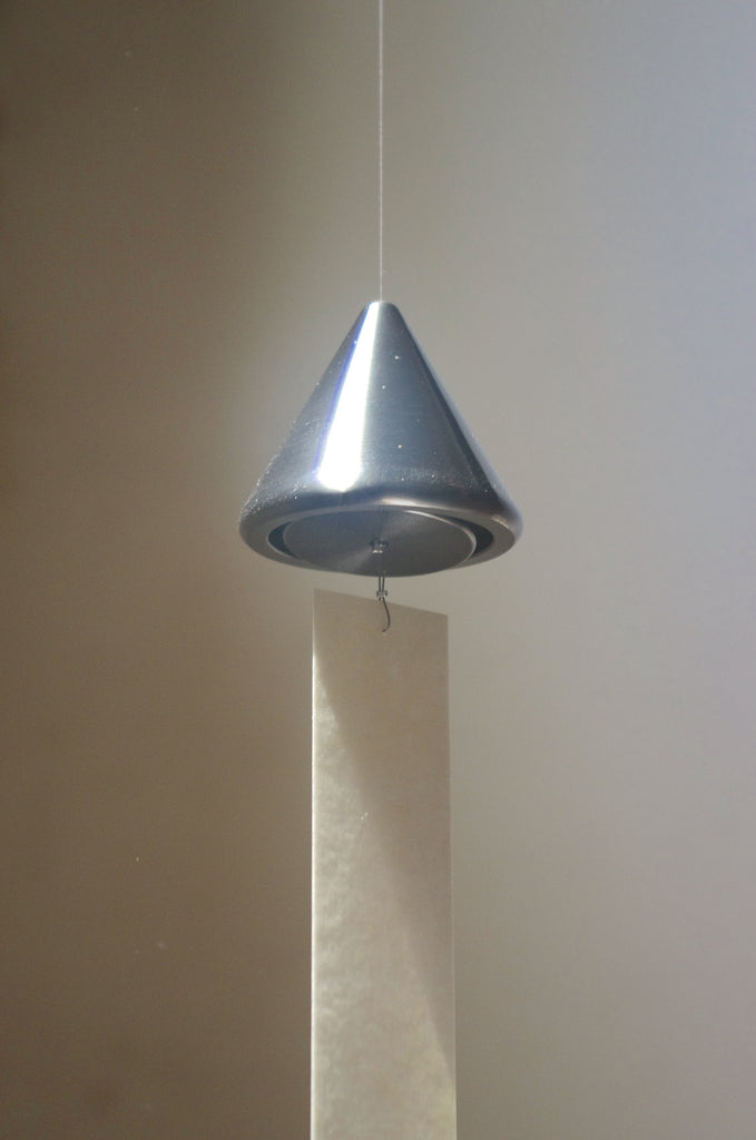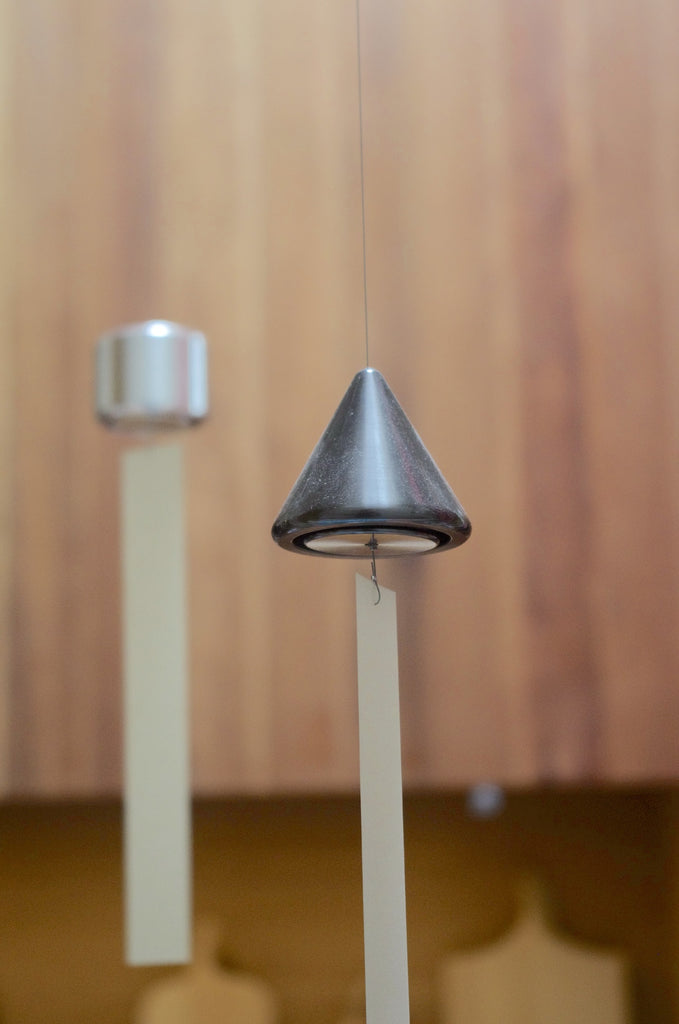 A series of wind chimes in simple graphic shapes: kaku (sqaure), maru (circle), and yama (triangle).