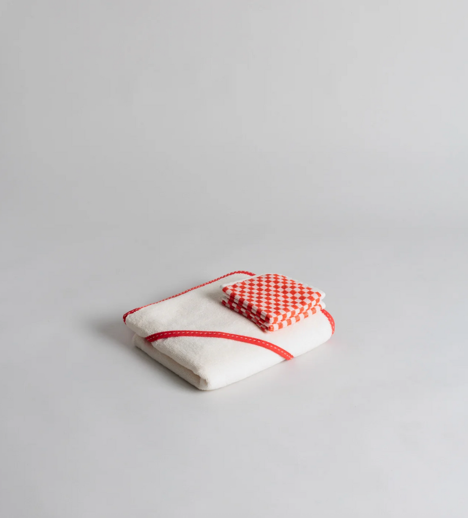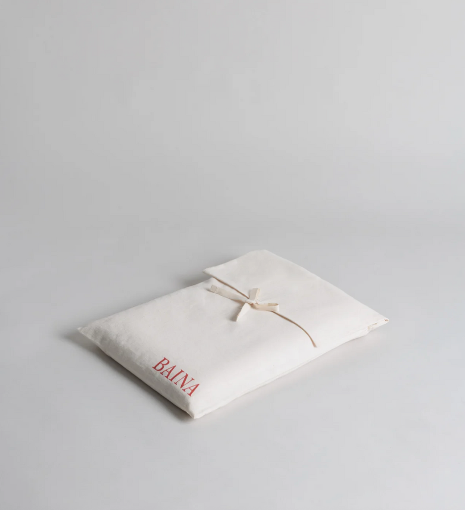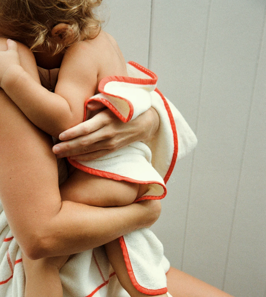 • Designed to embrace the ritual of bathing with a child. Crafted from soft, natural organic cotton, BAINA’s Baby Towelling Set has been highly considered for sensitive skin. The range features a cosy hood, softly curved corners, contrast binding and embroidered stitch detail. Thoughtfully presented in an organic cotton bag with delicate ribbon tie, The Baby Towelling Set is an elevated essential for new parents, and those looking to gift to them.