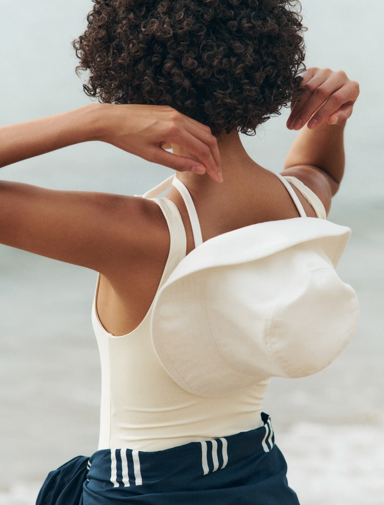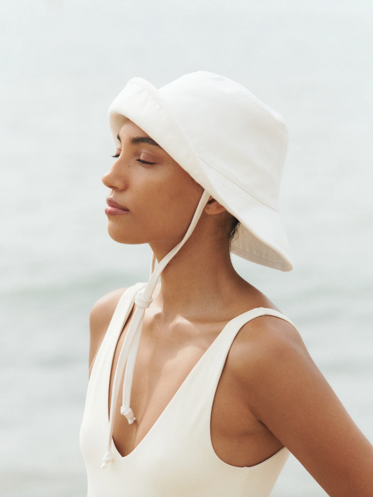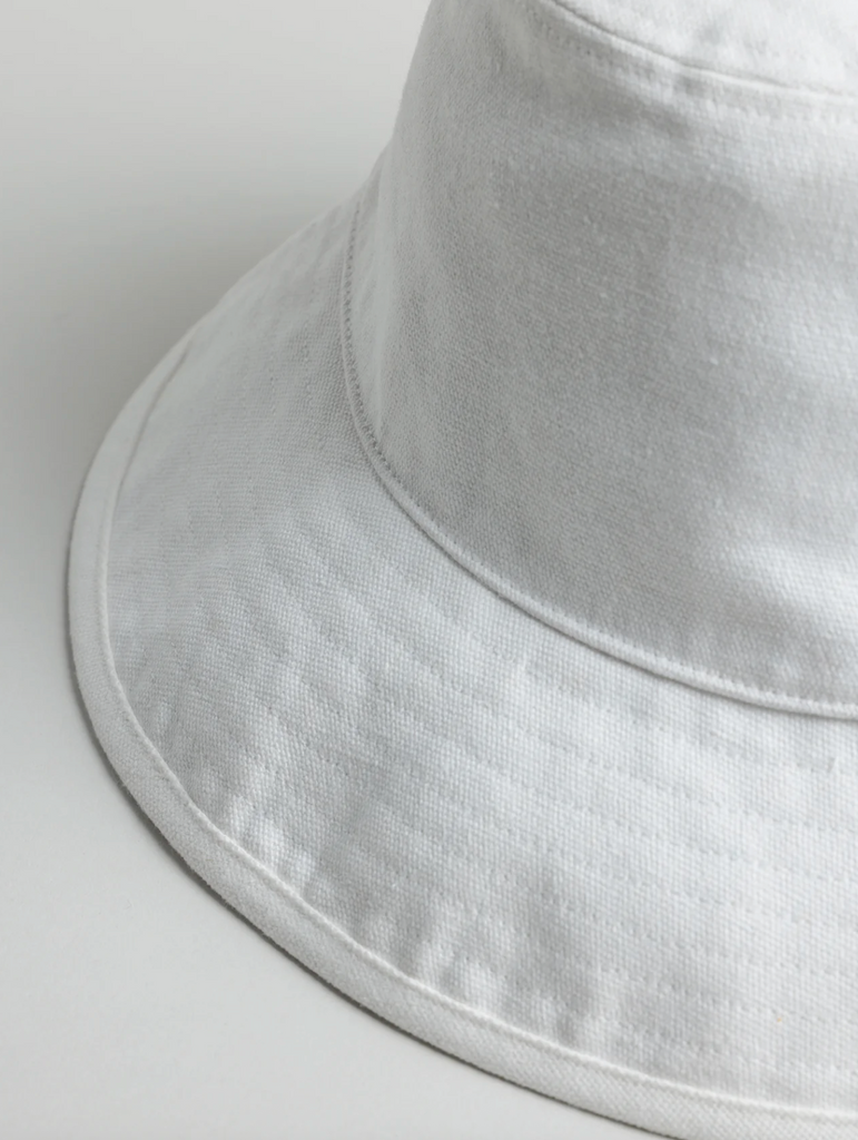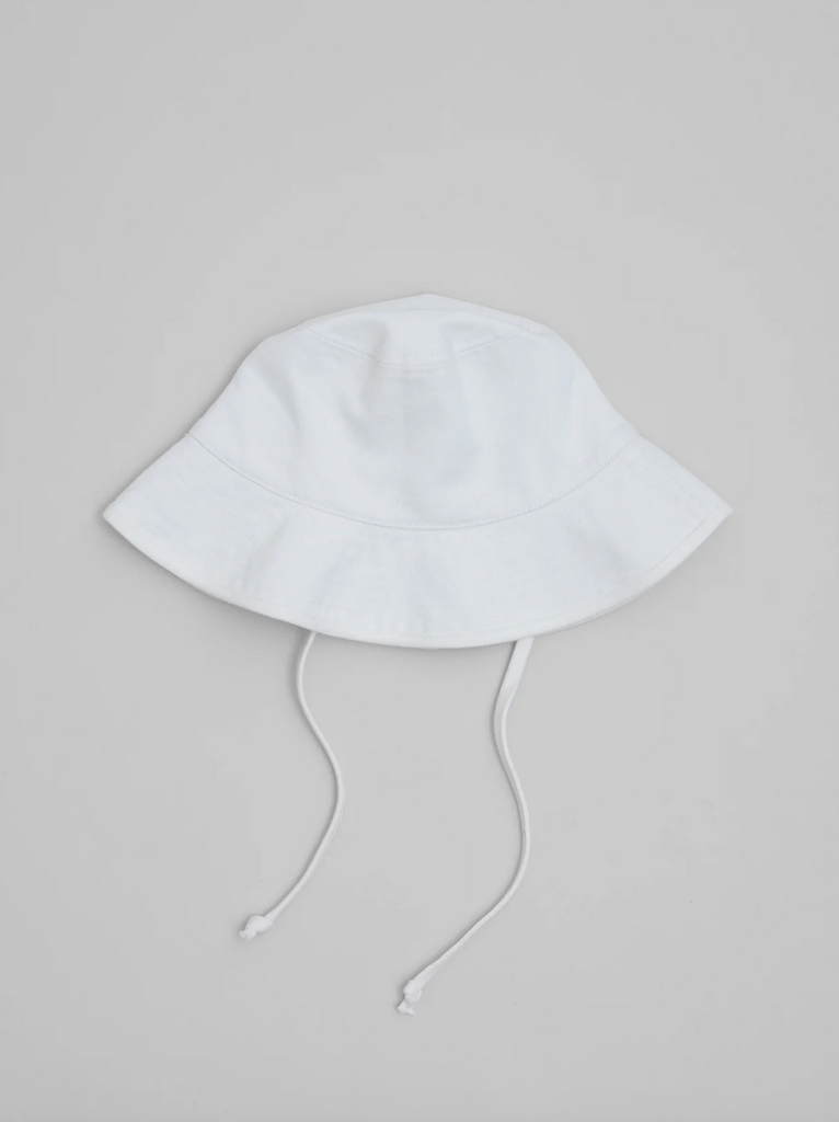 • A soft cotton canvas hat with a wide, flexible brim. Can be worn folded up or down, with self-fabric ties and tonal topstitching to reinforce shape. Foldable and packable – the Bateman Hat is a considered take on the classic bucket hat for long sun-drenched days.