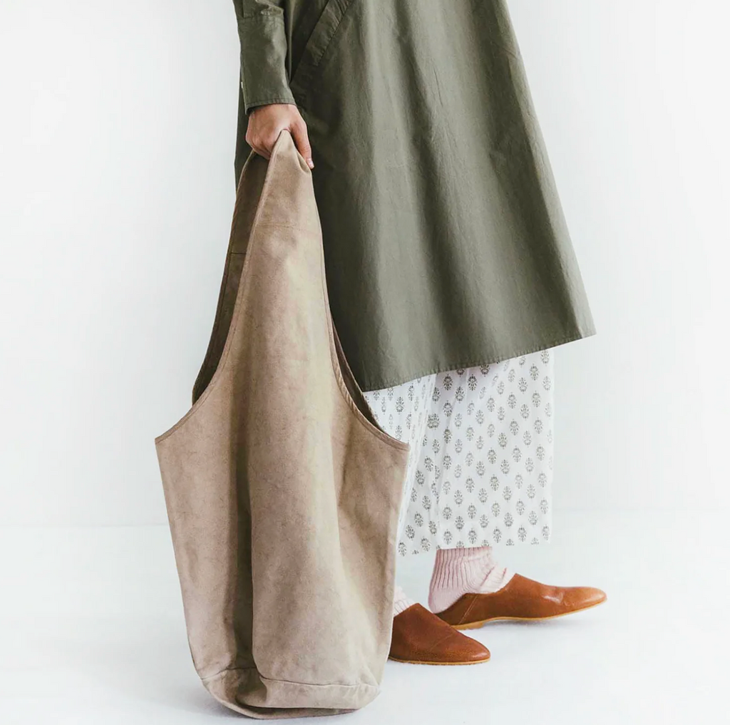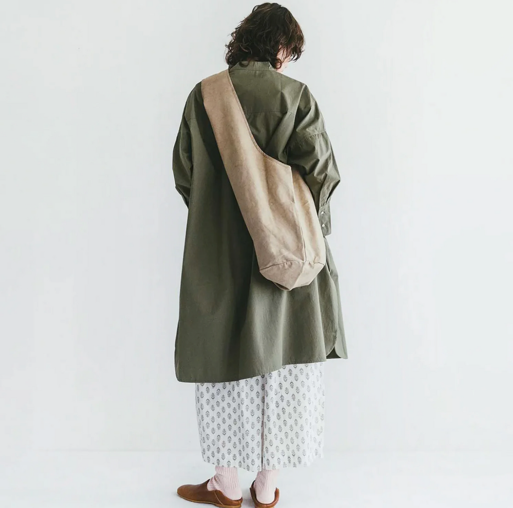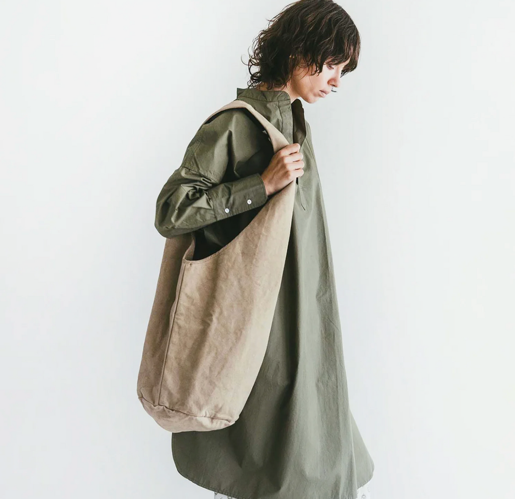 This large shoulder bag, made of canvas, features a cute bucket-like silhouette and handles that are seamlessly integrated with the body of the bag. With its bold design, it makes a statement and adds a stylish touch to even the simplest outfits. You can carry it over your shoulder or across your body. The canvas material has just the right amount of structure, making the bag durable and spacious enough to carry a lot of items. It also has an inner pocket to keep smaller items.