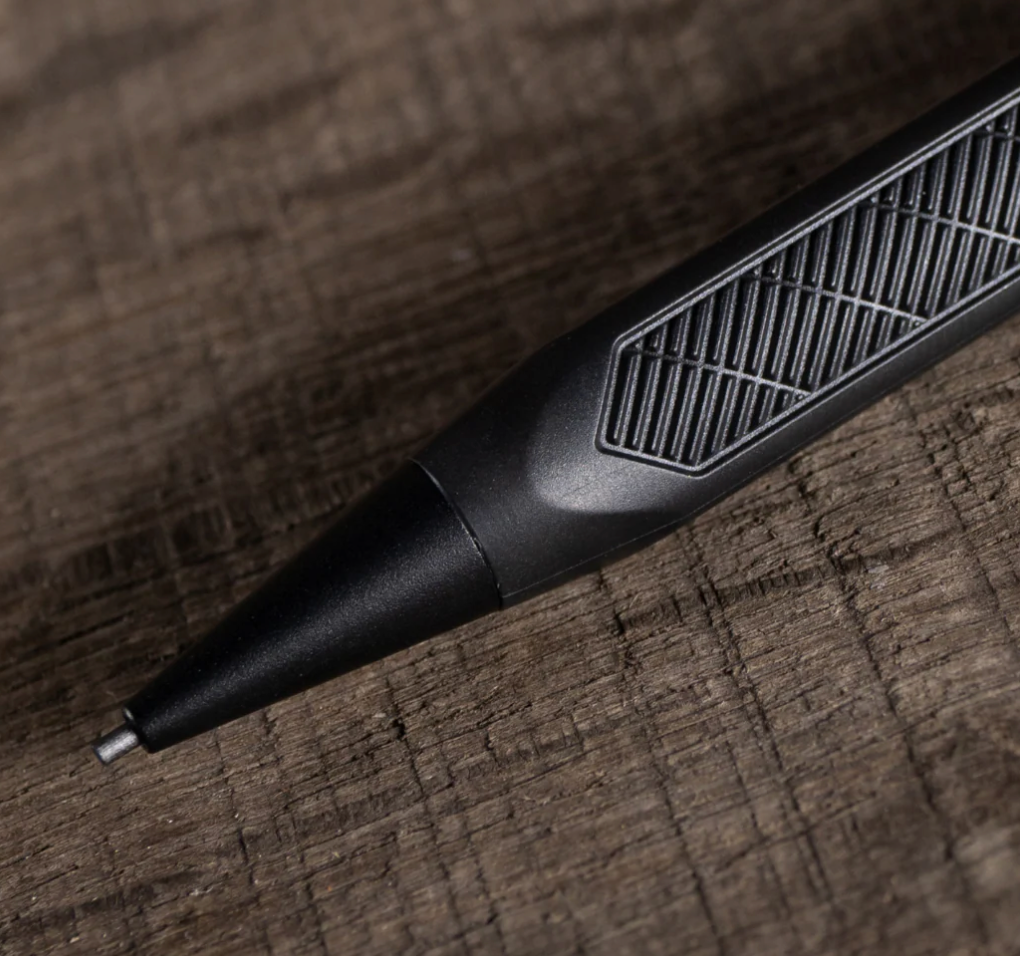 Barrel: Made of tough plastic and aluminium; features a stainless steel pocket clip, triangular textured grip for secure handling, and click lead advancement.