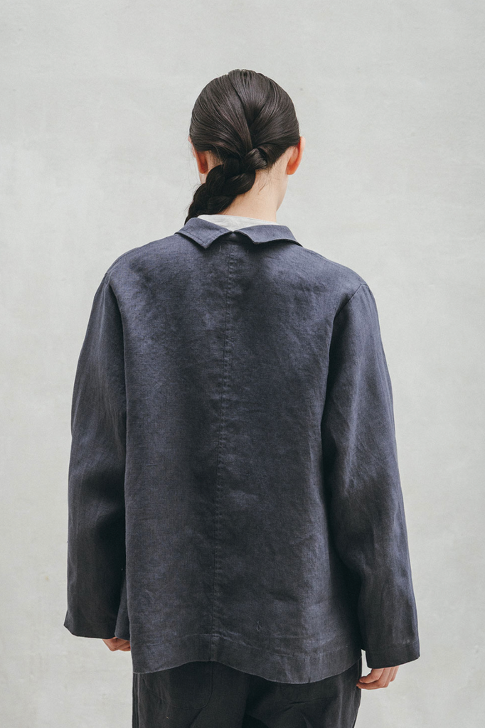 This no-button linen jacket offers the comfort of a shirt with the structure of a tailored collar. It's easy to throw on without looking too casual. Ideal over pants, dresses, or skirts, it serves as a reliable outer layer in changing seasons or chilly mornings. Large pockets add practical appeal. It will be your wardrobe essential.