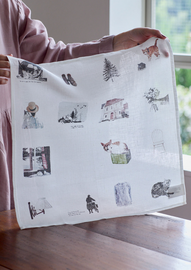 Fog Linen Work x Misata Ogiwara Handkerchief - Living with Cats
